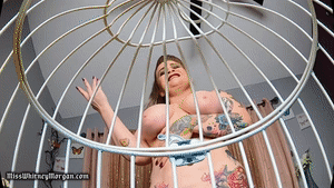 Miss Whitney Morgan is in front of you, wearing only her bathrobe. She looks down at you, imprisoned in a cage, explains she’s been thinking of you, excited to have you trapped, weak, all hers. No one can hear or help you!